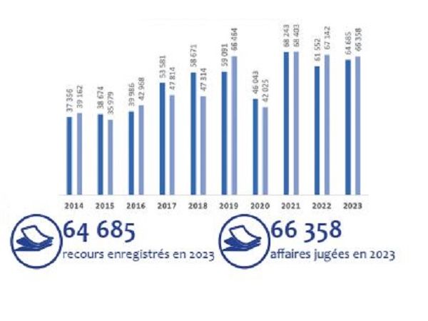 Après avoir connu un ralentissement brutal d’activité lié à la pandémie en 2020, le nombre de recours est reparti fortement à la hausse en 2021.